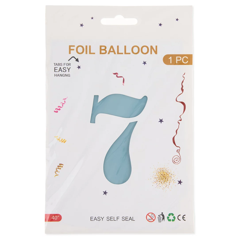 Шар (40''/102 см) Цифра, 7, Светло-голубой, Сатин, 1 шт. в уп., 24267