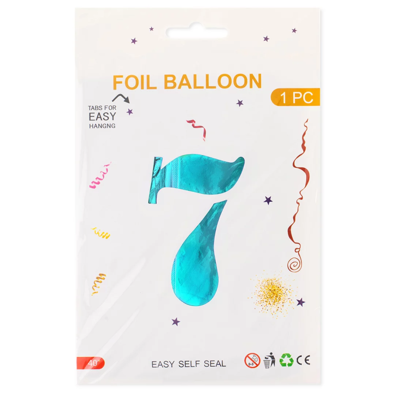 Шар (40''/102 см) Цифра, 7, Тиффани, Металлик, 1 шт. в уп., 24237