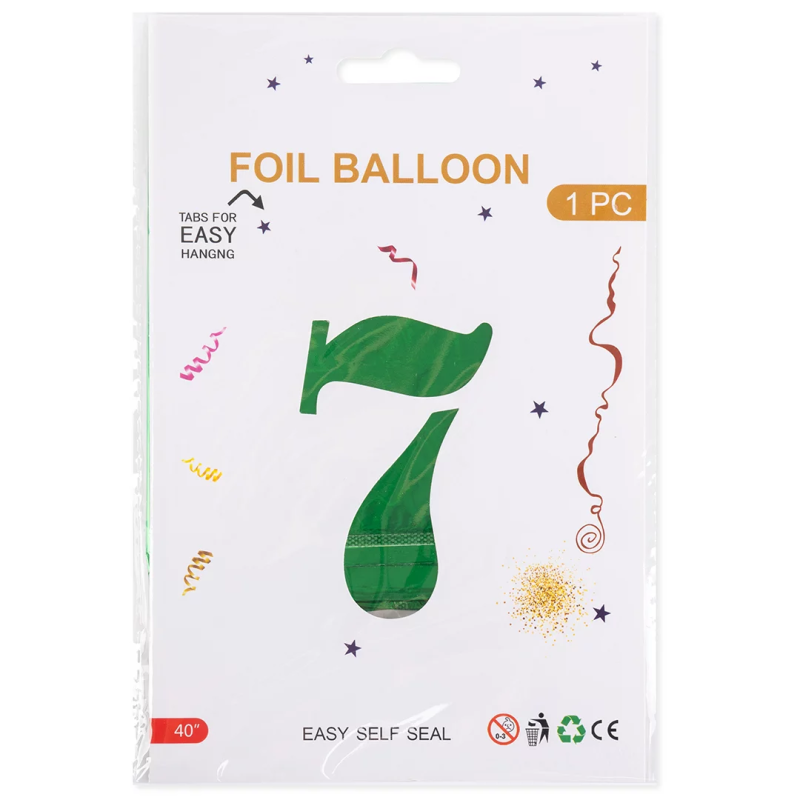 Шар (40''/102 см) Цифра, 7, Зеленый, Металлик, 1 шт. в уп., 27377