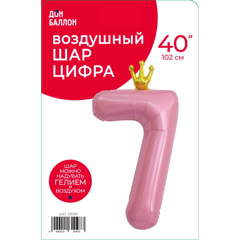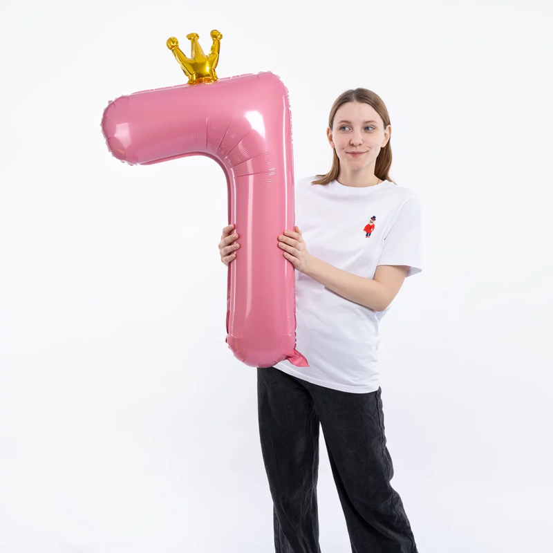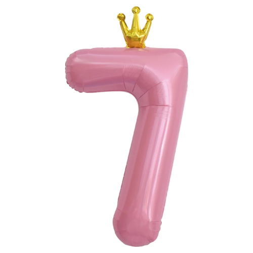 Шар (40''/102 см) Цифра, 7 Золотая корона, Розовый, 1 шт. в уп., 131197