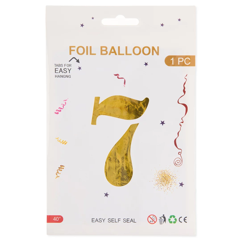 Шар (40''/102 см) Цифра, 7, Золото, Металлик, 1 шт. в уп., 24087