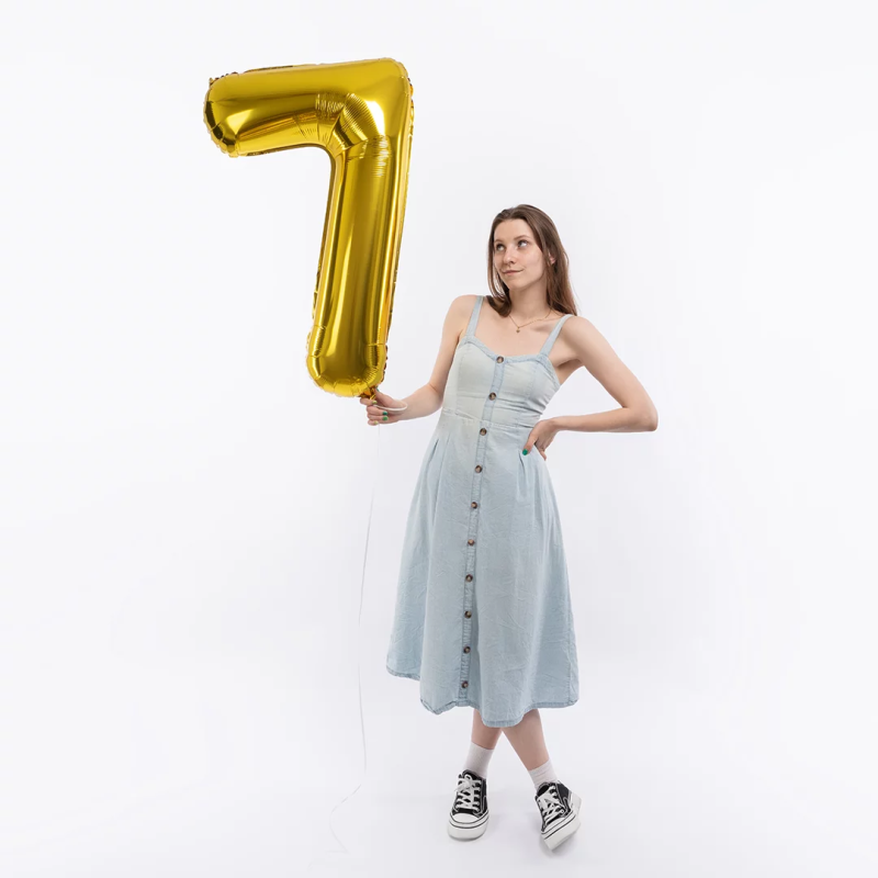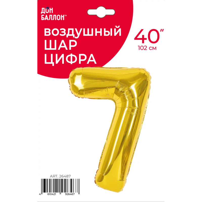 Шар (40''/102 см) Цифра, 7, Золото, Металлик, 1 шт. в уп., 26487