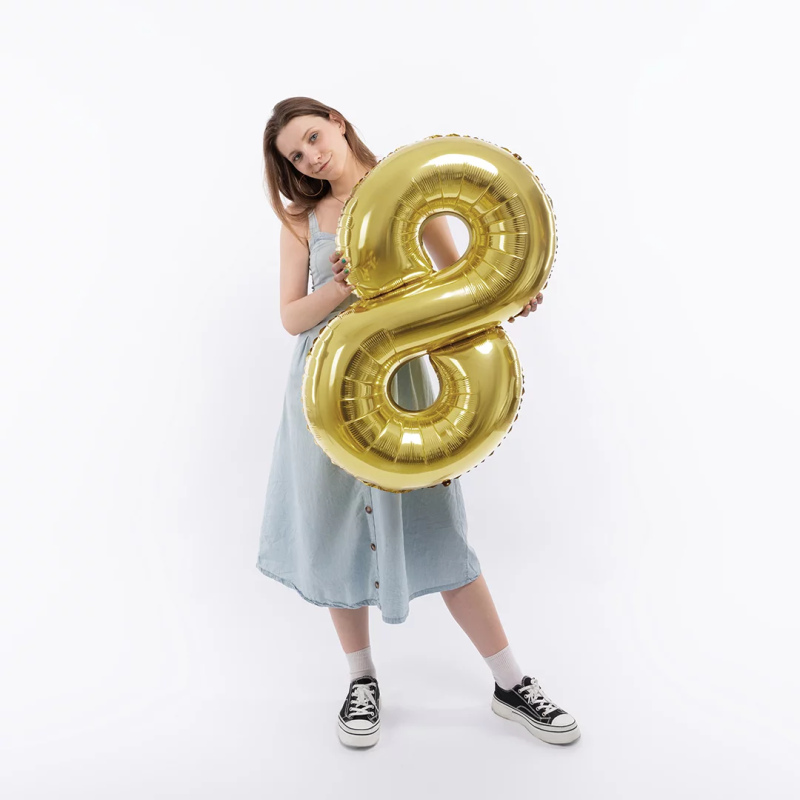 Шар (40''/102 см) Цифра, 8, Белое золото, Металлик, 1 шт. в уп., 24028