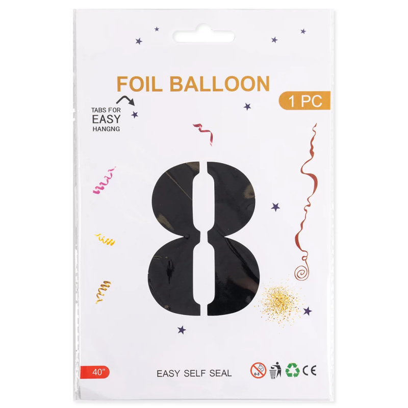 Шар (40''/102 см) Цифра, 8, Черный, Металлик, 1 шт. в уп., 27358