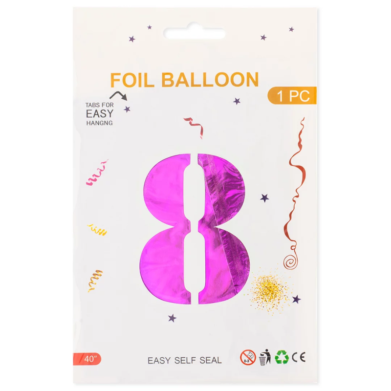 Шар (40''/102 см) Цифра, 8, Фуше, Металлик, 1 шт. в уп., 24228