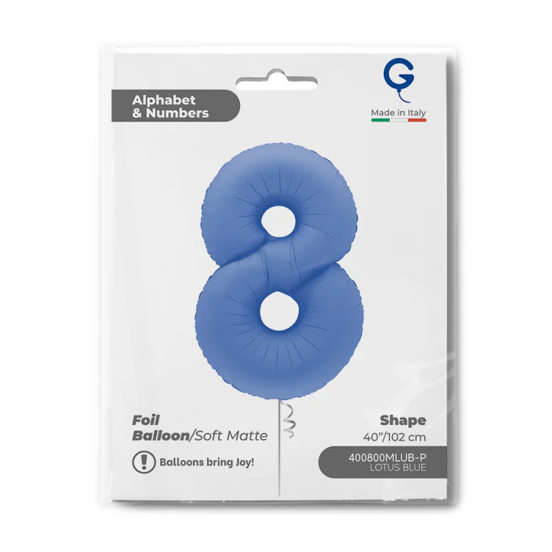 Шар (40''/102 см) Цифра, 8, Голубой Лотос, Матовый, 1 шт. в уп., 400800MLUB-P