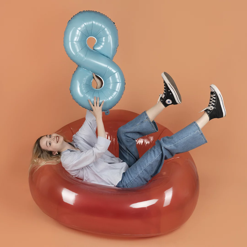 Шар (40''/102 см) Цифра, 8, Голубой, Матовый, 1 шт. в уп., 24118