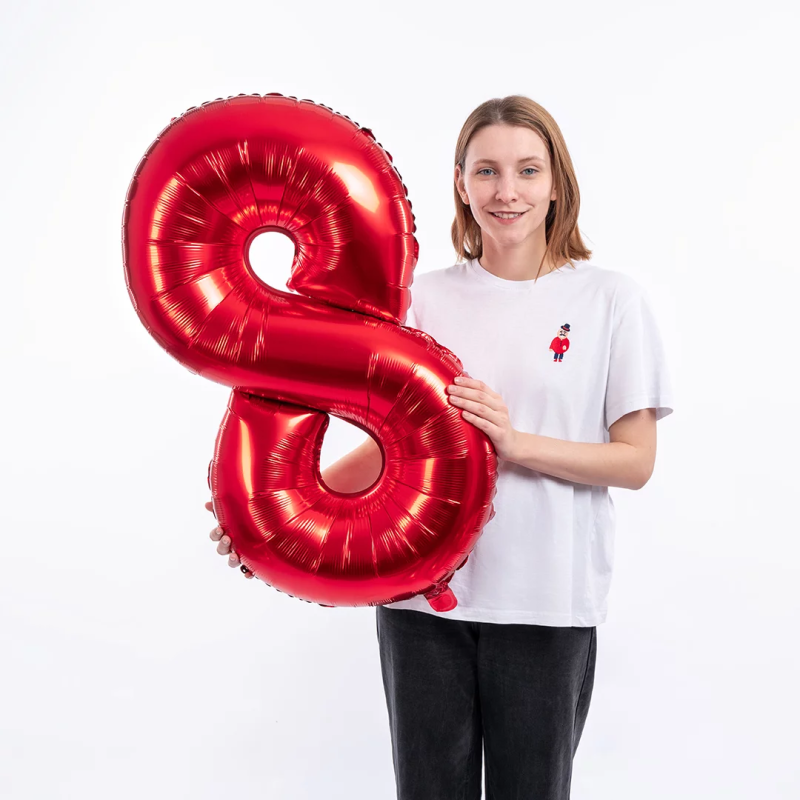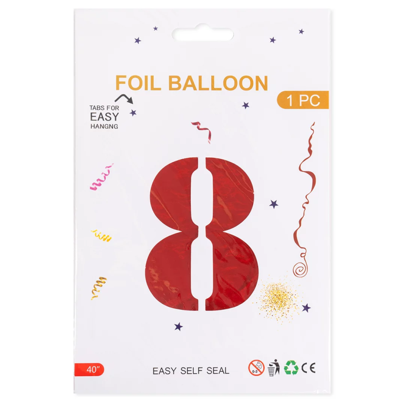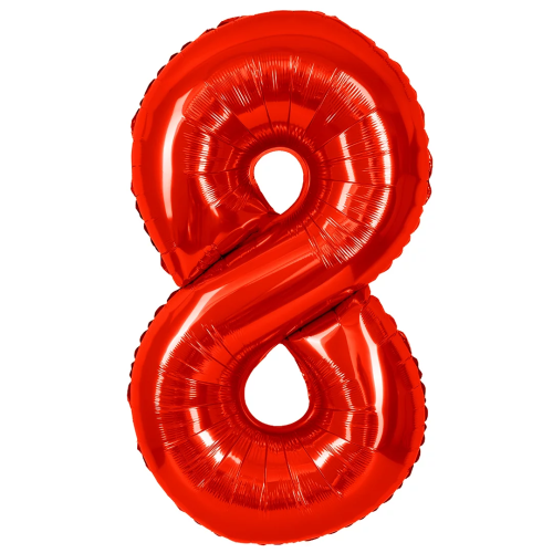 Шар (40''/102 см) Цифра, 8, Красный, Металлик, 1 шт. в уп., 27368