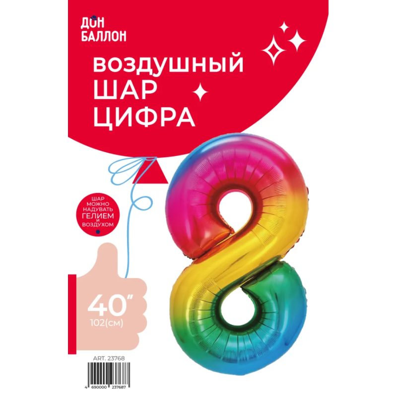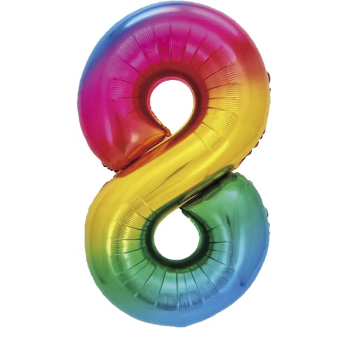 Шар (40''/102 см) Цифра, 8, Радужный, Градиент, 1 шт. в уп., 23768