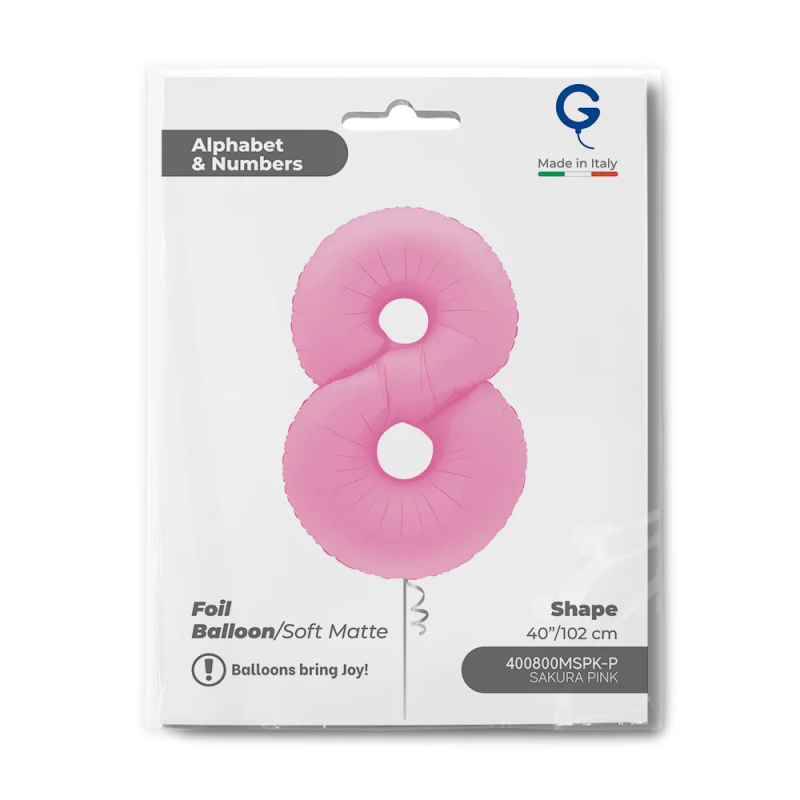 Шар (40''/102 см) Цифра, 8, Розовая Сакура, Матовый, 1 шт. в уп., 400800MSPK-P
