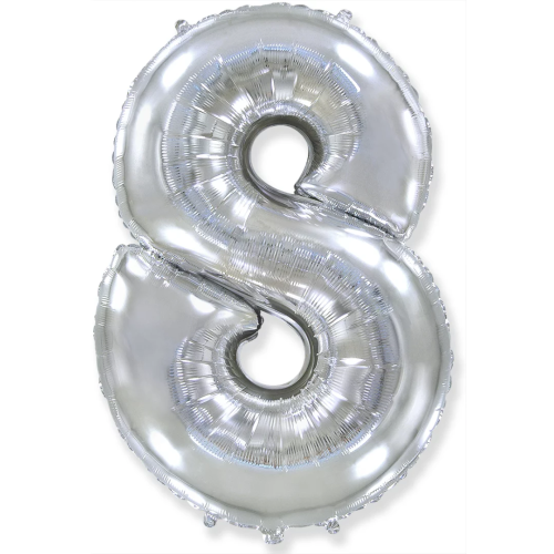 Шар (40''/102 см) Цифра, 8, Серебро, 1 шт., 901768P