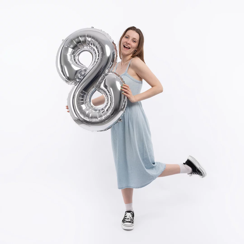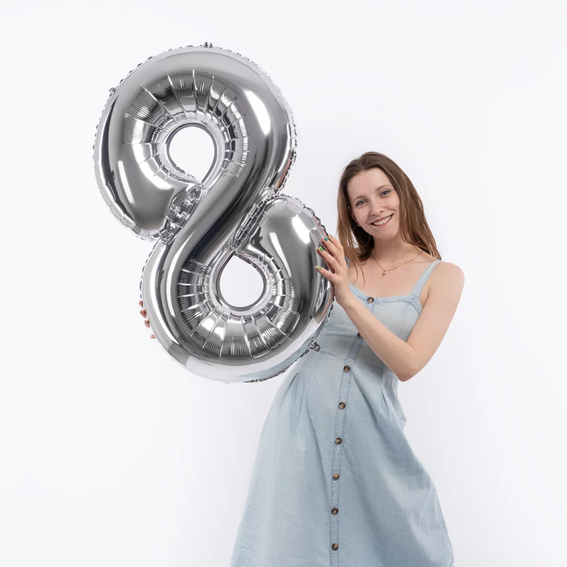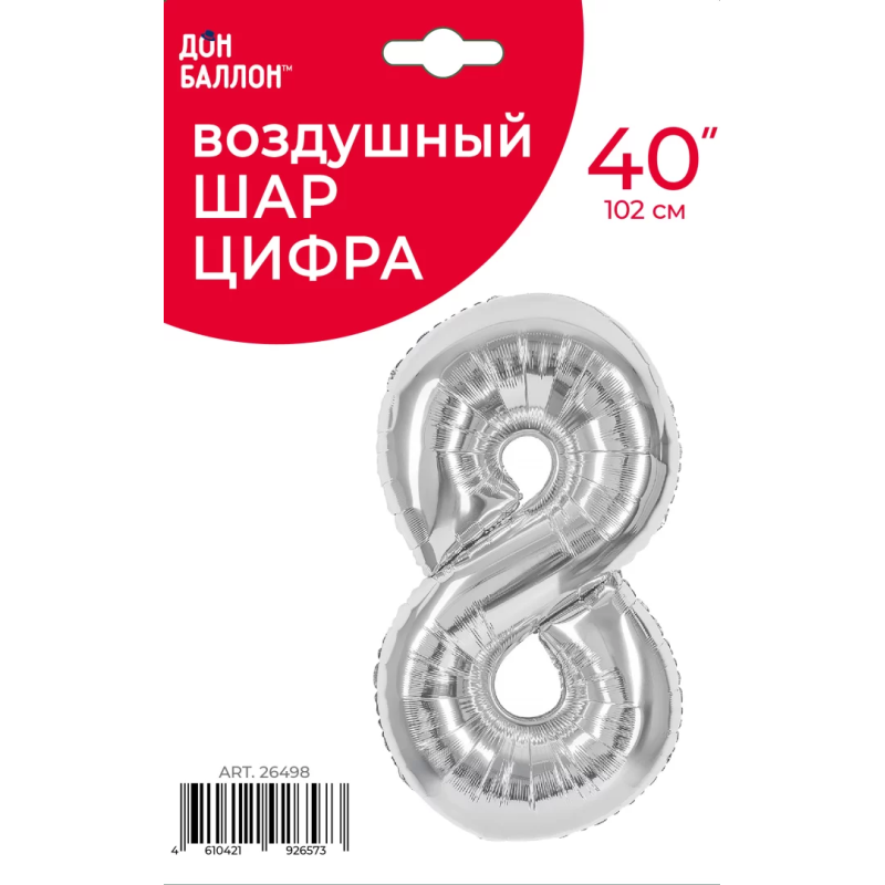 Шар (40''/102 см) Цифра, 8, Серебро, Металлик, 1 шт. в уп., 26498