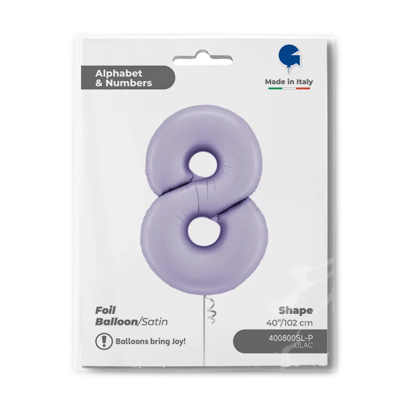Шар (40''/102 см) Цифра, 8, Сиреневый, Сатин, 1 шт. в уп., 400800SL-P