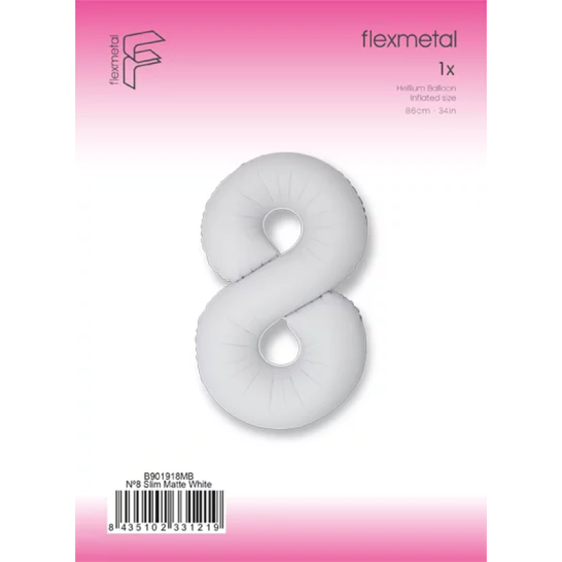 Шар (40''/102 см) Цифра, 8 Slim, Белый, Матовый, 1 шт. в уп., B901918MB