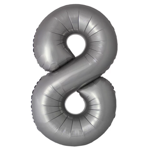 Шар (40''/102 см) Цифра, 8 Slim, Лунное Серебро, Матовый, 1 шт., 901918MMS