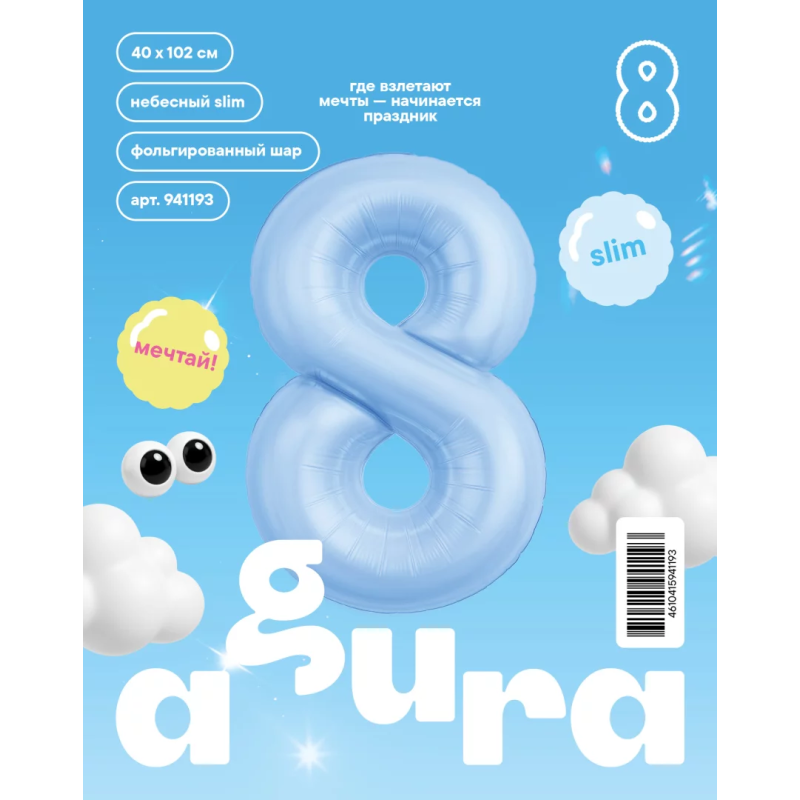 | Линейка | Agura Шар (40''/102 см) Цифра, Slim, Небесный |