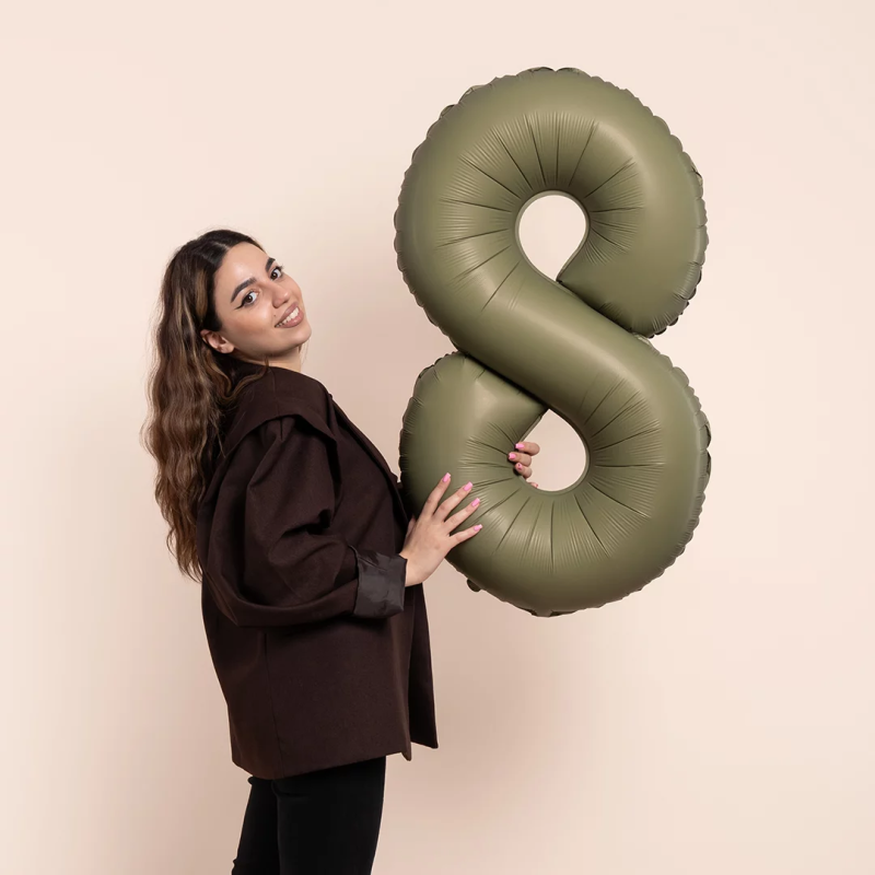 Шар (40''/102 см) Цифра, 8 Slim, Оливковый, Матовый, 1 шт., 901918MOL
