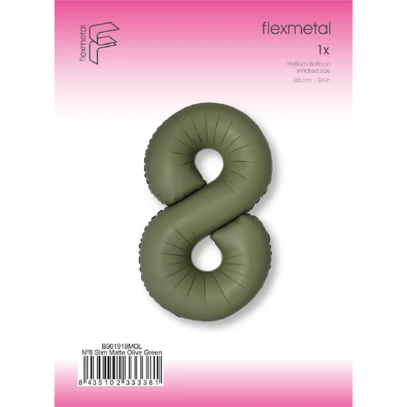 Шар (40''/102 см) Цифра, 8 Slim, Оливковый, Матовый, 1 шт. в уп., B901918MOL