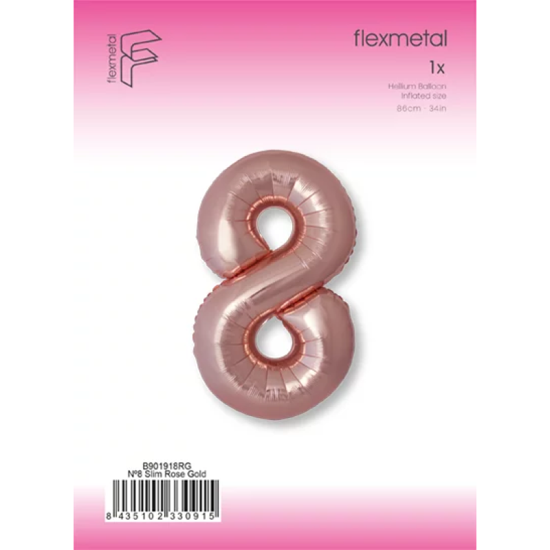 Шар (40''/102 см) Цифра, 8 Slim, Розовое Золото, Металлик, 1 шт. в уп., B901918RG