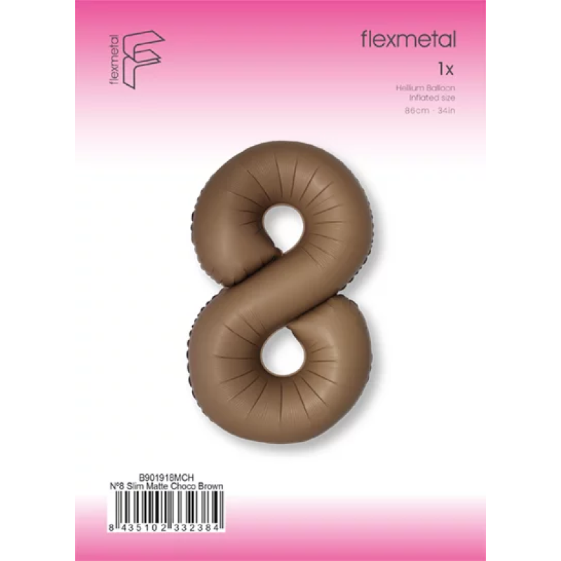 Шар (40''/102 см) Цифра, 8 Slim, Шоколад, Матовый, 1 шт. в уп., B901918MCH
