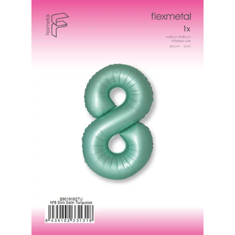 Шар (40''/102 см) Цифра, 8 Slim, Тиффани, Сатин, 1 шт. в уп., B901918STU