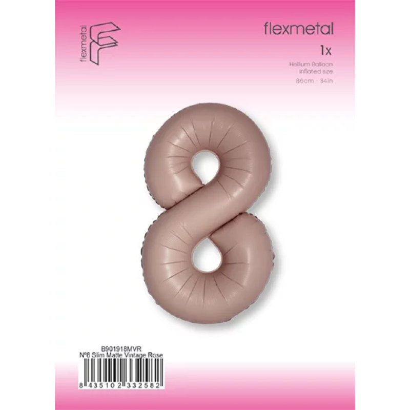 Шар (40''/102 см) Цифра, 8 Slim, Винтажная роза, Матовый, 1 шт. в уп., B901918MVR