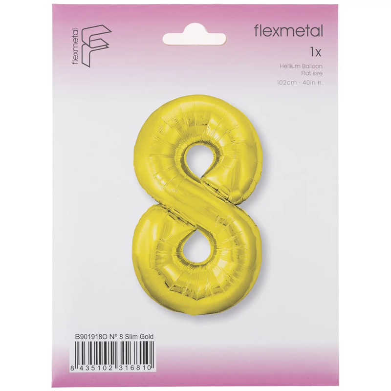 Шар (40''/102 см) Цифра, 8 Slim, Золото, 1 шт. в уп., B901918O