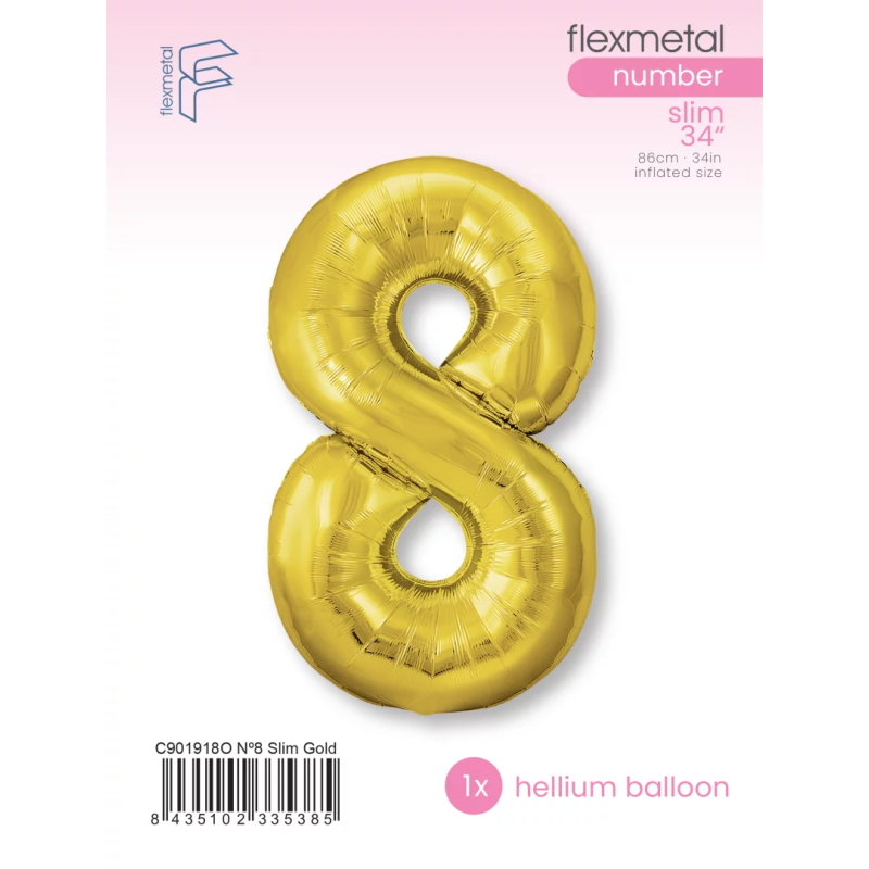 Шар (40''/102 см) Цифра, 8 Slim, Золото, 1 шт. в уп., C901918O