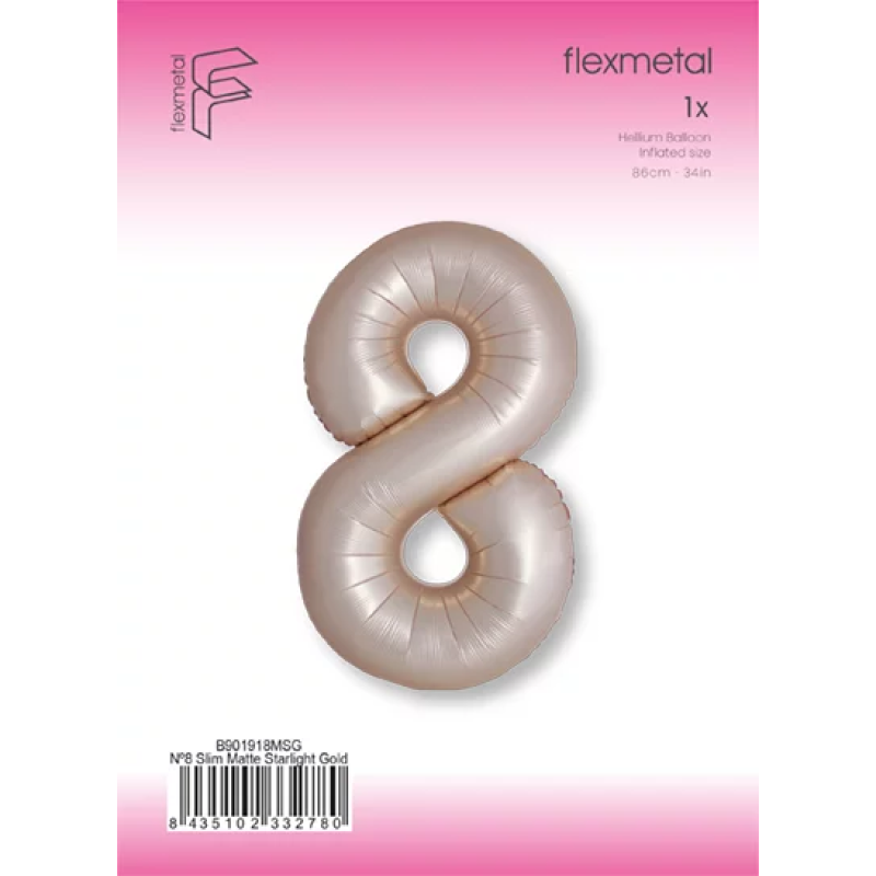 Шар (40''/102 см) Цифра, 8 Slim, Звездное Золото, Матовый, 1 шт. в уп., B901918MSG