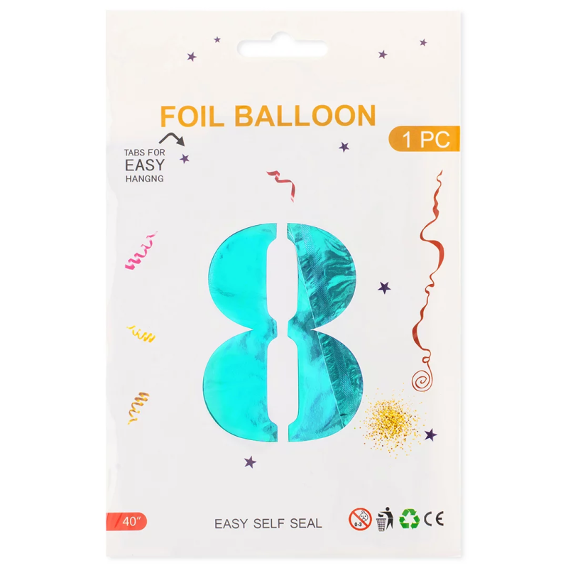 Шар (40''/102 см) Цифра, 8, Тиффани, Металлик, 1 шт. в уп., 24238