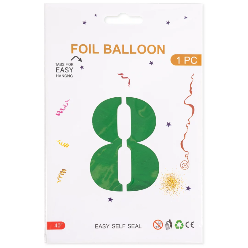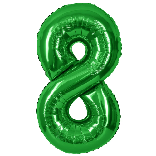 Шар (40''/102 см) Цифра, 8, Зеленый, Металлик, 1 шт. в уп., 27378