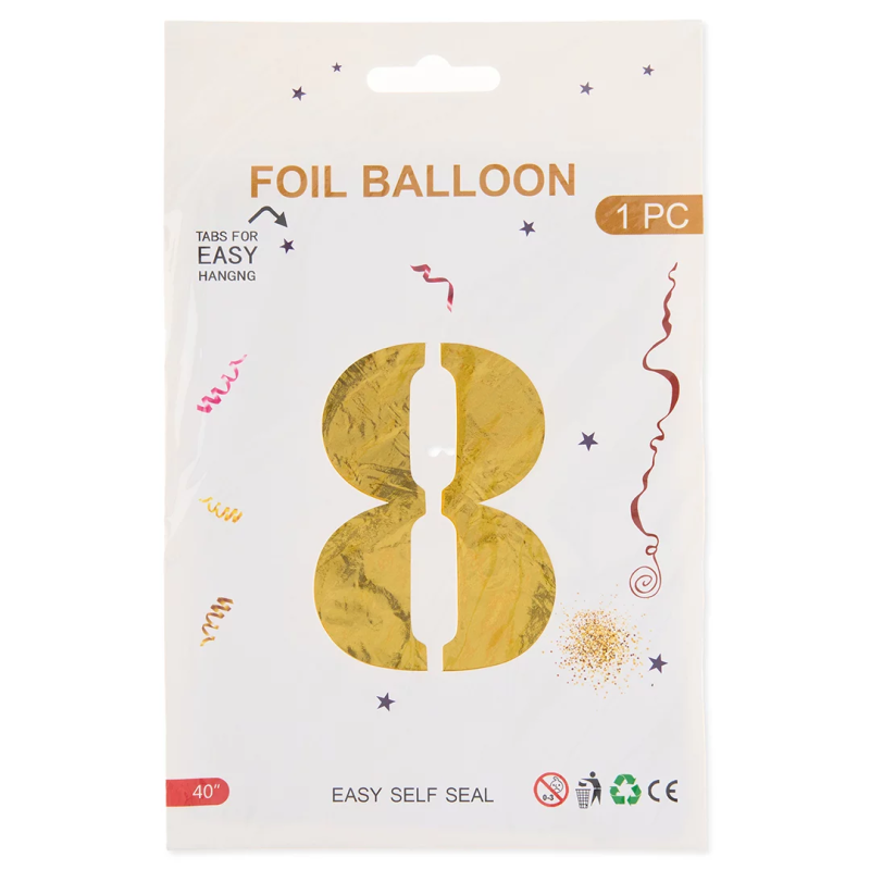 Шар (40''/102 см) Цифра, 8, Золото, Металлик, 1 шт. в уп., 24088
