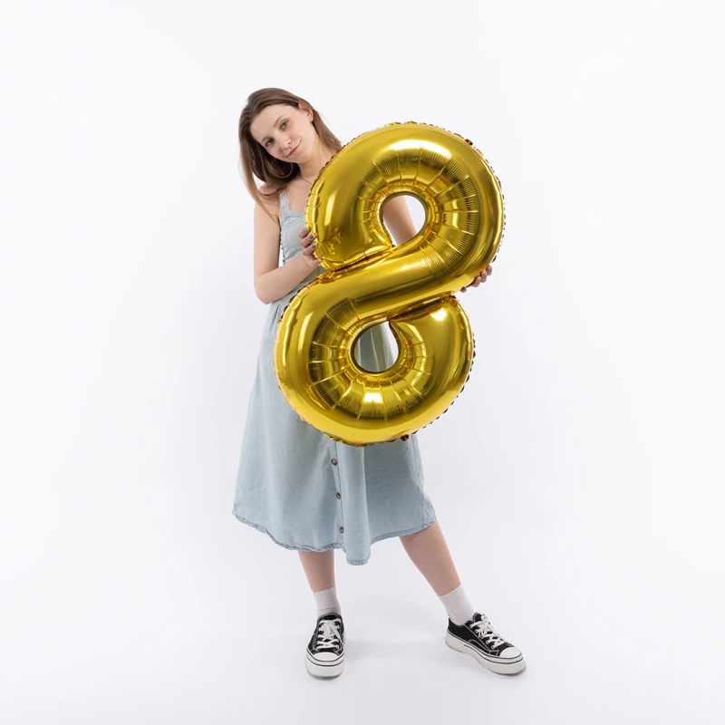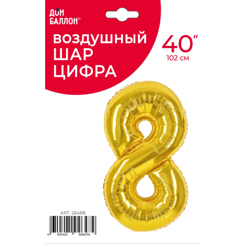 Шар (40''/102 см) Цифра, 8, Золото, Металлик, 1 шт. в уп., 26488