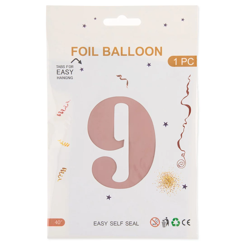 Шар (40''/102 см) Цифра, 9, Пыльная роза, Сатин, 1 шт. в уп., 24279