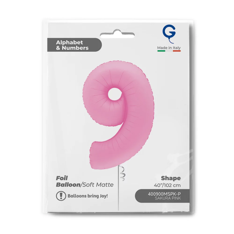 Шар (40''/102 см) Цифра, 9, Розовая Сакура, Матовый, 1 шт. в уп., 400900MSPK-P