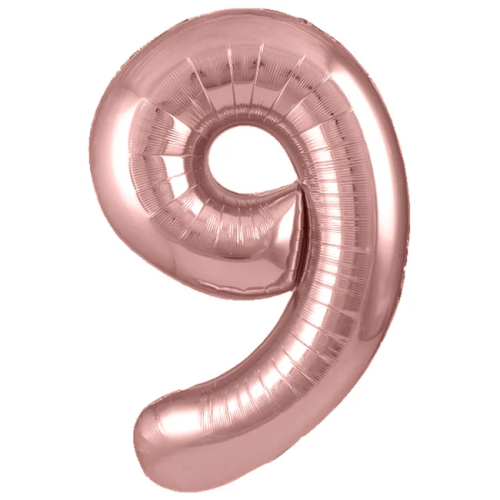 Шар (40''/102 см) Цифра, 9, Розовое Золото, Металлик, 1 шт. в уп., 24249