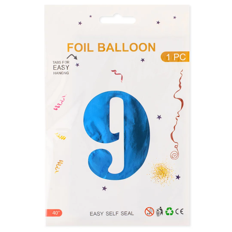 Шар (40''/102 см) Цифра, 9, Синий, Металлик, 1 шт. в уп., 26269