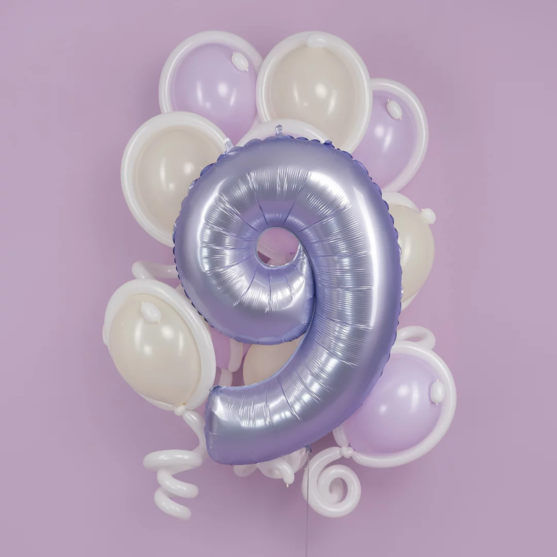 Шар (40''/102 см) Цифра, 9, Сиреневый, Сатин, 1 шт. в уп., 400900SL-P