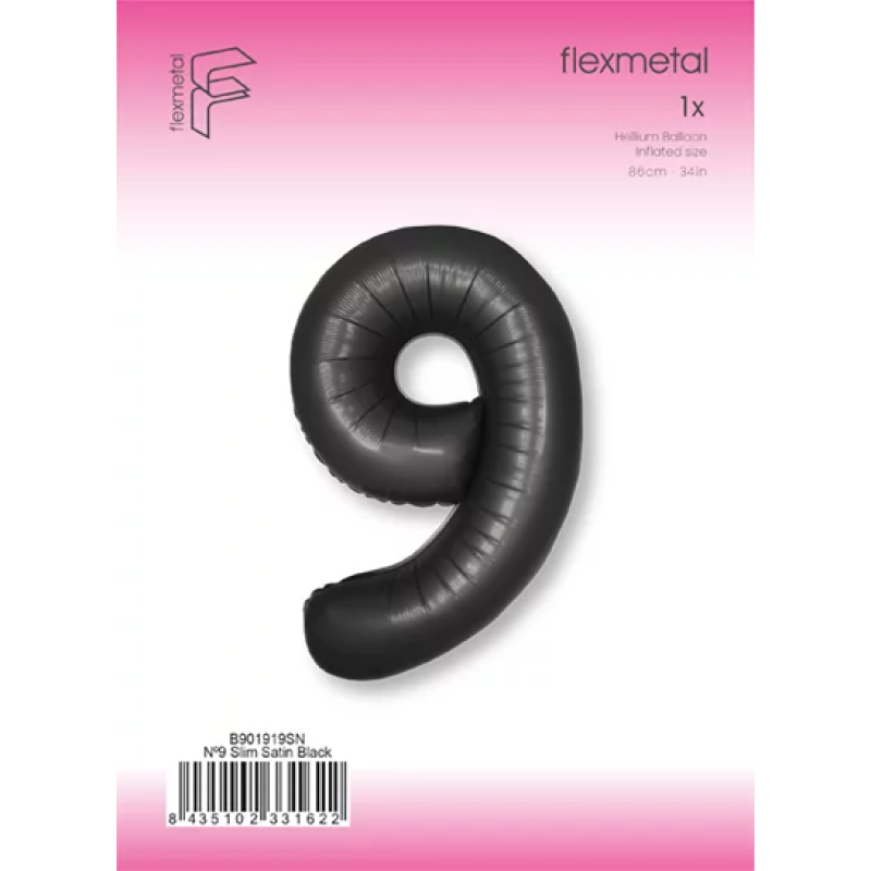 Шар (40''/102 см) Цифра, 9 Slim, Черный, Сатин, 1 шт. в уп., B901919SN