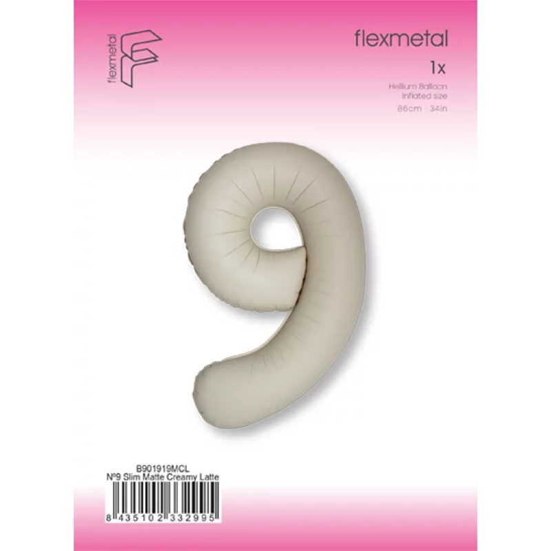 Шар (40''/102 см) Цифра, 9 Slim, Кремовый Латте, Матовый, 1 шт. в уп., B901919MCL