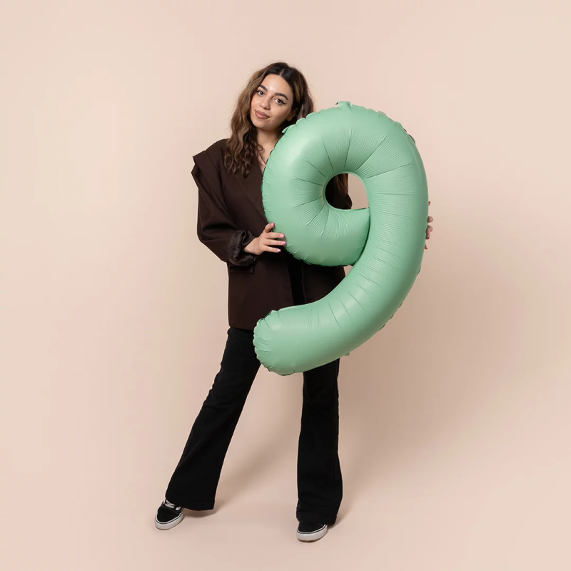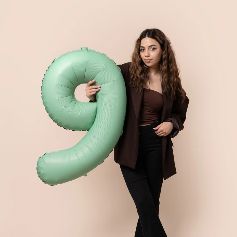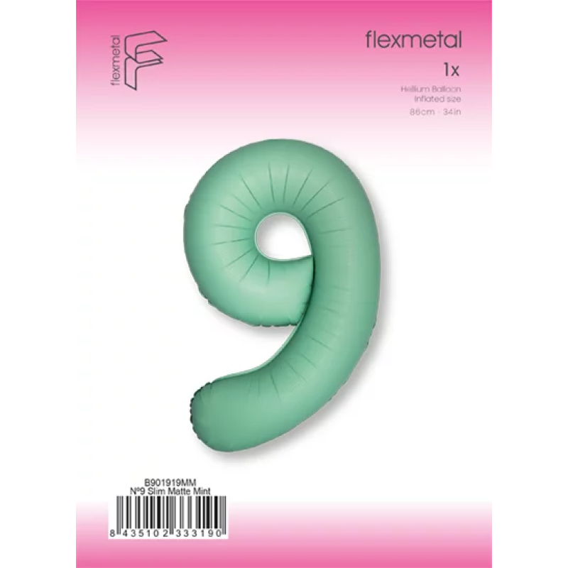Шар (40''/102 см) Цифра, 9 Slim, Мятный, Матовый, 1 шт. в уп., B901919MM