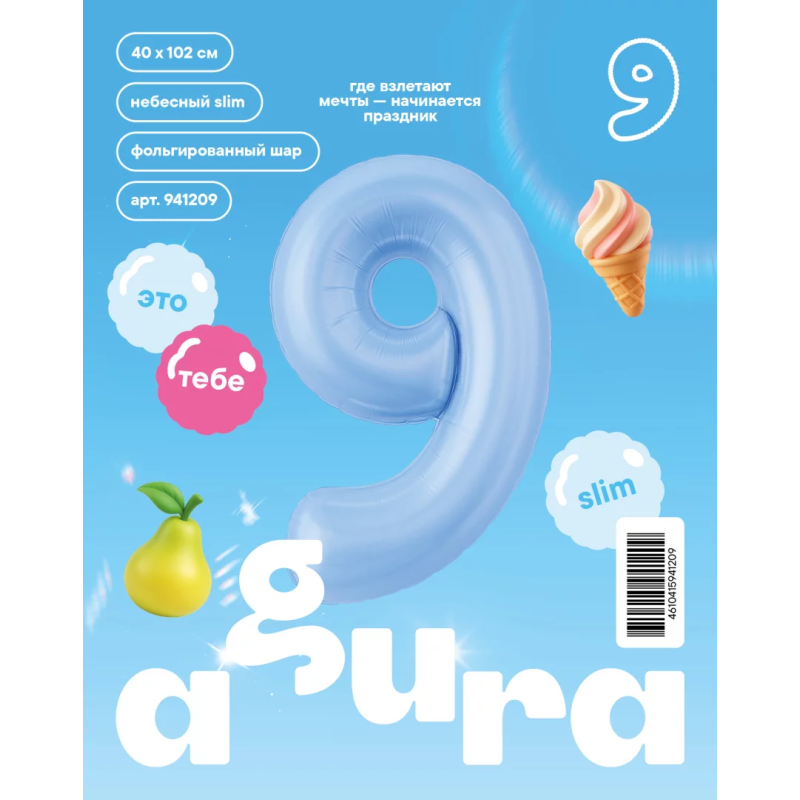 | Линейка | Agura Шар (40''/102 см) Цифра, Slim, Небесный |