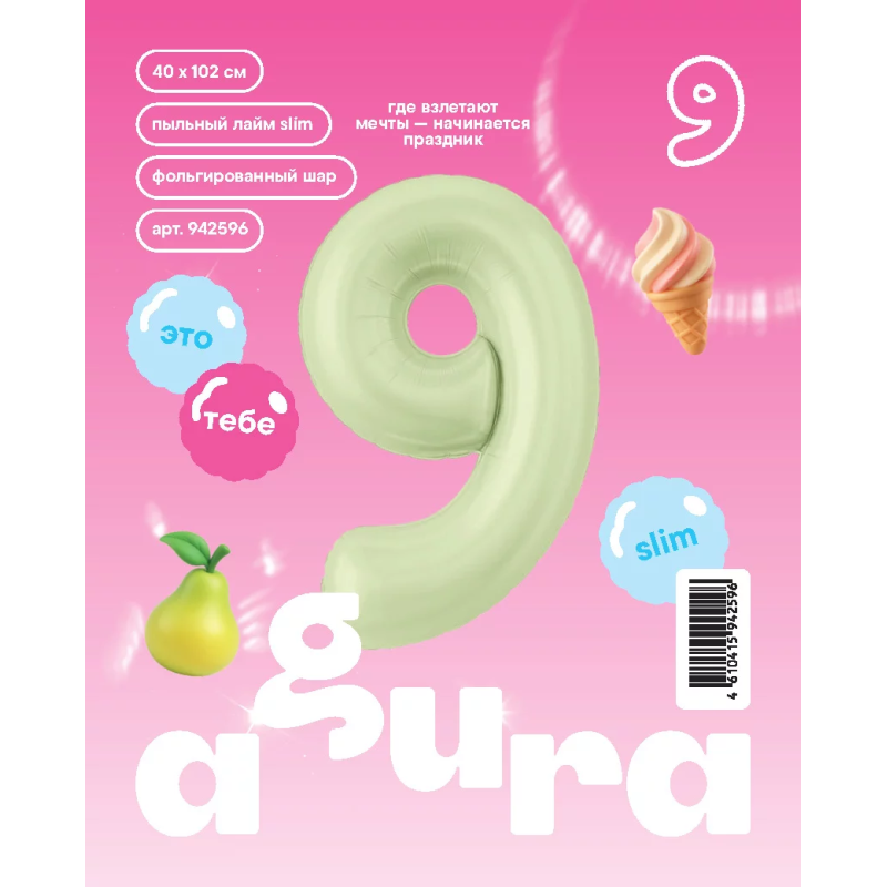| Линейка | Agura Шар (40''/102 см) Цифра, Slim, Пыльный лайм |