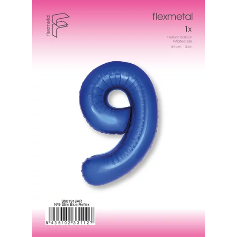 Шар (40''/102 см) Цифра, 9 Slim, Синий хром, Металлик, 1 шт. в уп., B901919AR