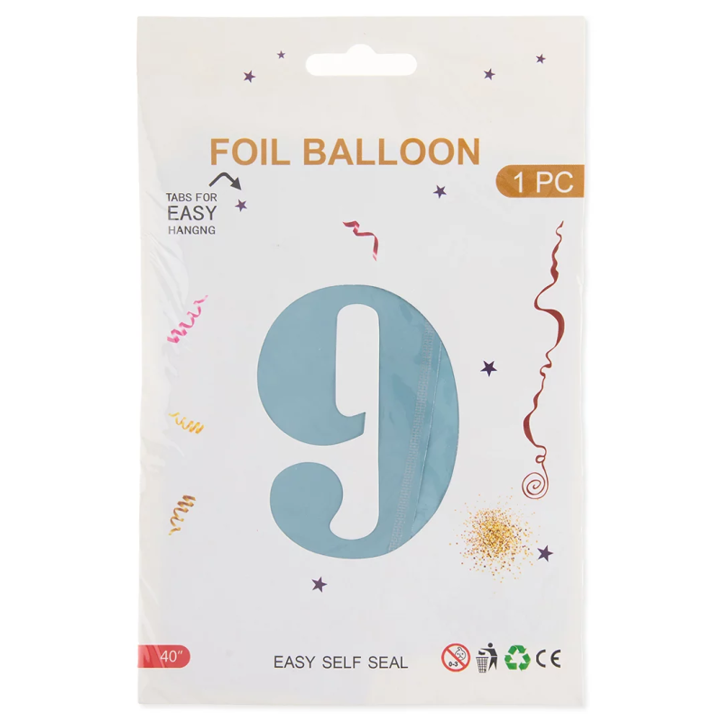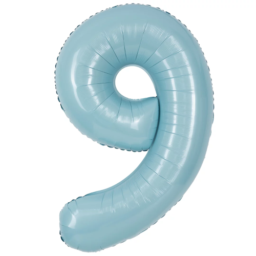 Шар (40''/102 см) Цифра, 9, Светло-голубой, Сатин, 1 шт. в уп., 24269