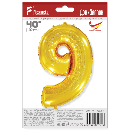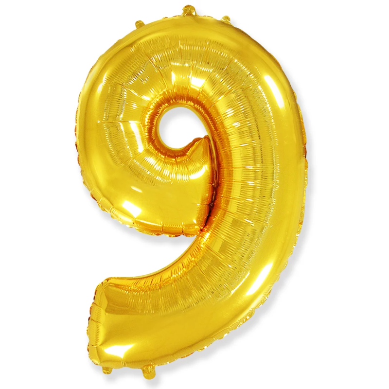 Шар (40''/102 см) Цифра, 9, Золото, 1 шт. в уп., 901769OP
