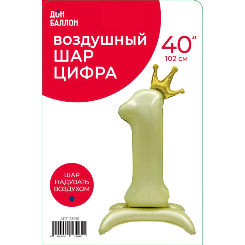 Шар (40''/102 см) Цифра на подставке, 1 Золотая корона, 1 шт. в уп., 23981