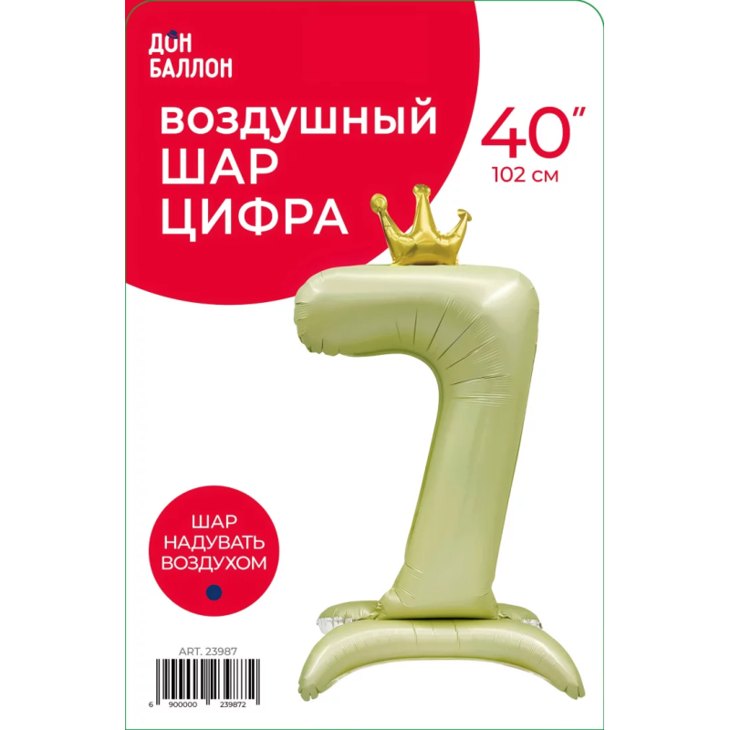 Шар (40''/102 см) Цифра на подставке, 7 Золотая корона, 1 шт. в уп., 23987
