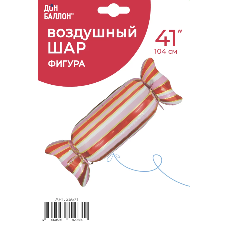 Шар (41''/104 см) Фигура, Конфета Полоски, Розовый/Красный, 1 шт. в уп., 26671