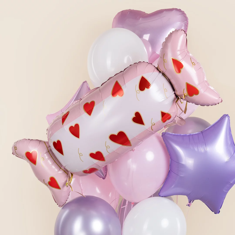 Шар (41''/104 см) Фигура, Конфета Сердечки, Розовый, 1 шт. в уп., 26674